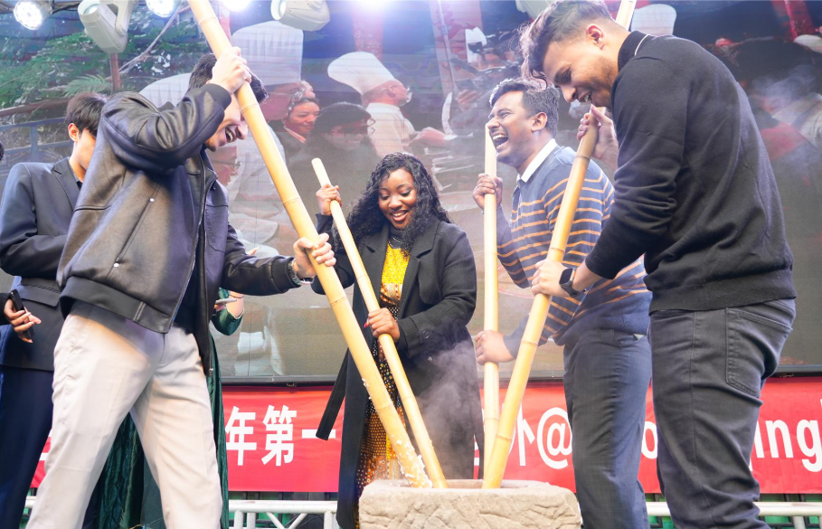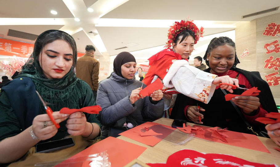 老外们登城赏灯、看皮影戏、吃肉夹馍,